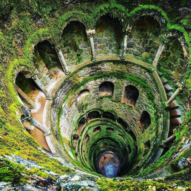 «Колодец посвящения» глубиной 27 метров в Кинта да Регалейра, недалеко от города Синтра, Португалия. Говорят, колодец служил для религиозных церемоний масонского братства