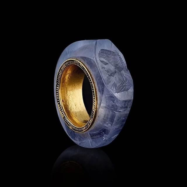 Сапфировое кольцо Калигулы, возраст которого 2000 лет. Портрет принадлежит четвертой и последней жене великого понтифика — Цезонии