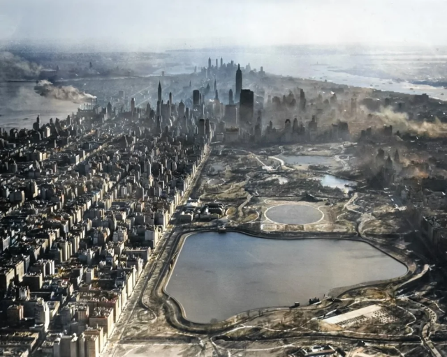 Вид с воздуха на Нью-Йорк, 1953 год.