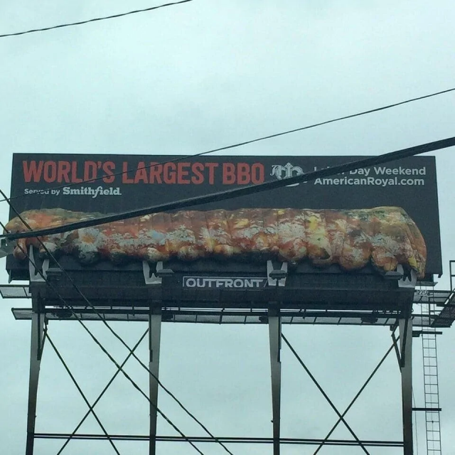 Рёбрышки на рекламном щите фастфуда выглядят как огромная гусеница