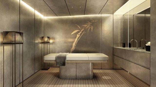На главной палубе — шесть кают. В отделке использовали мрамор, зеркала, текстиль и индивидуальное освещение от Armani/Casa.