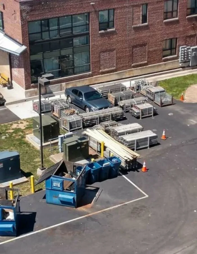 Парень передвинул конусы, чтобы припарковаться. Это случилось у жилого дома. Владелец машины не проживает там. Он отказался встать на другое место. Так что разгрузили стройматериалы прямо перед его автомобилем. Это было проще, чем вызывать эвакуатор.