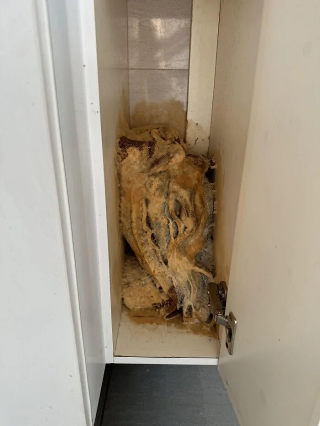 Нашёл в ванной комнате. Полотенца в плесени