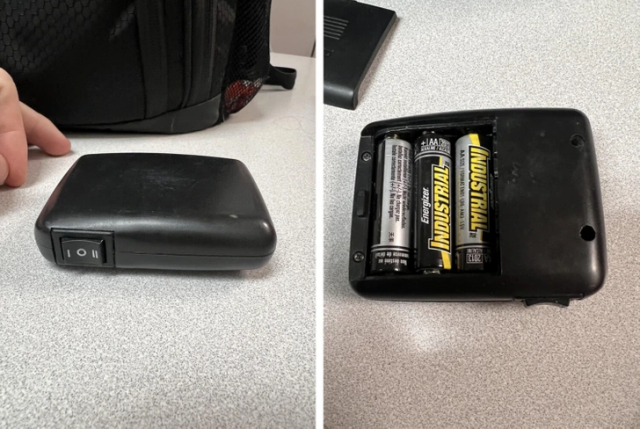 2. «Помогал начальнику передвигать столы и нашел эту штуку. Никаких экранов, маркировок или портов, только переключатель сбоку. При включении он вибрирует. Мы с коллегой в растерянности»