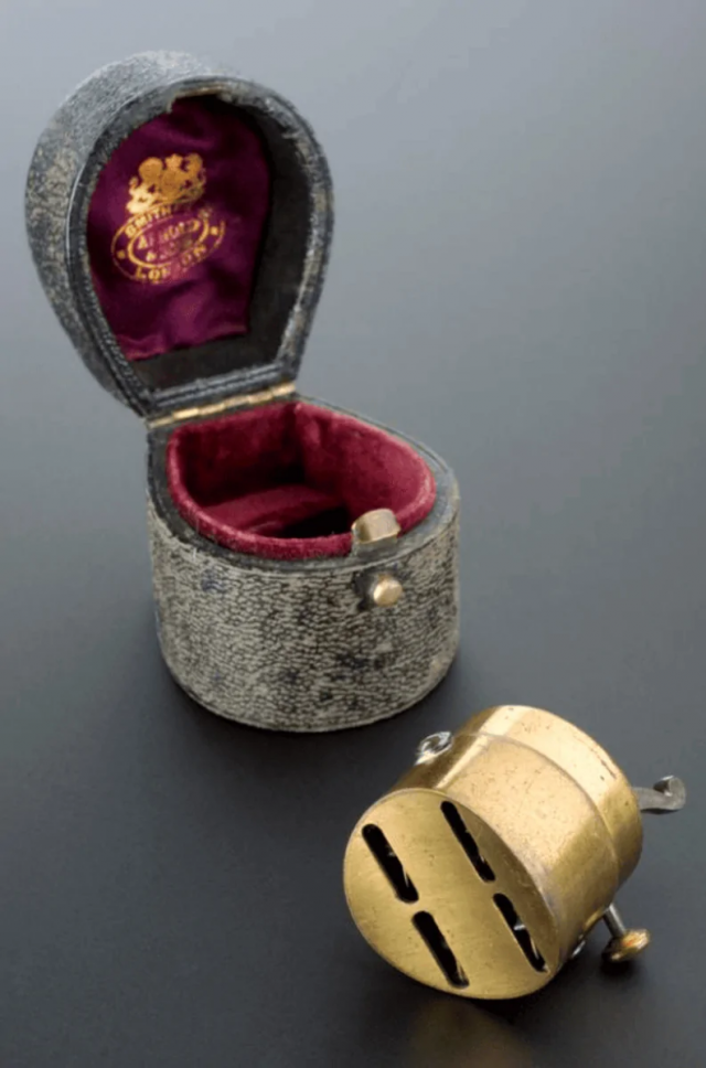 Латунный шприц с футляром – само собой, многоразовый, 1601-1630-е