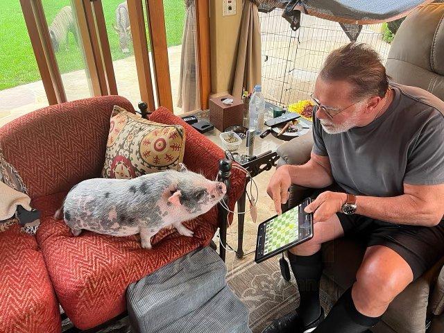 Пожалуй, все знают, что Арнольд Шварценеггер является счастливым владельцем целого зверинца. Он завел свинью, лошадку, осла и нескольких собак (и еще кого-то мы точно забыли). Но зачем актер устроил в своем доме маленький контактный зоопарк?