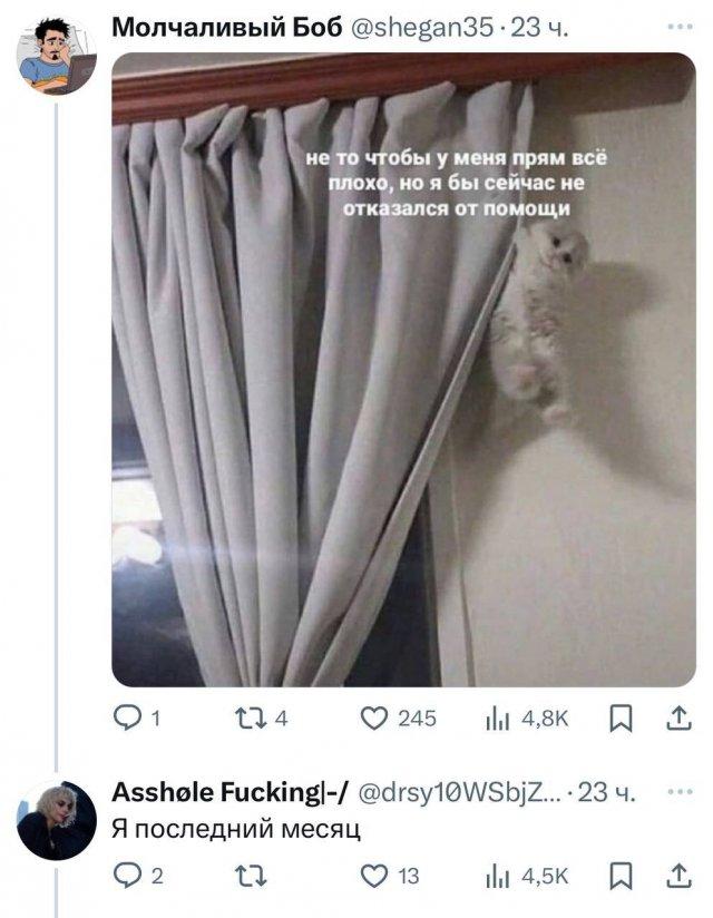 Девушка обратилась к людям, чтобы ей покидали любимые мемы с котами - и тут началось. Появились не только пушистики, но и философские мысли.
