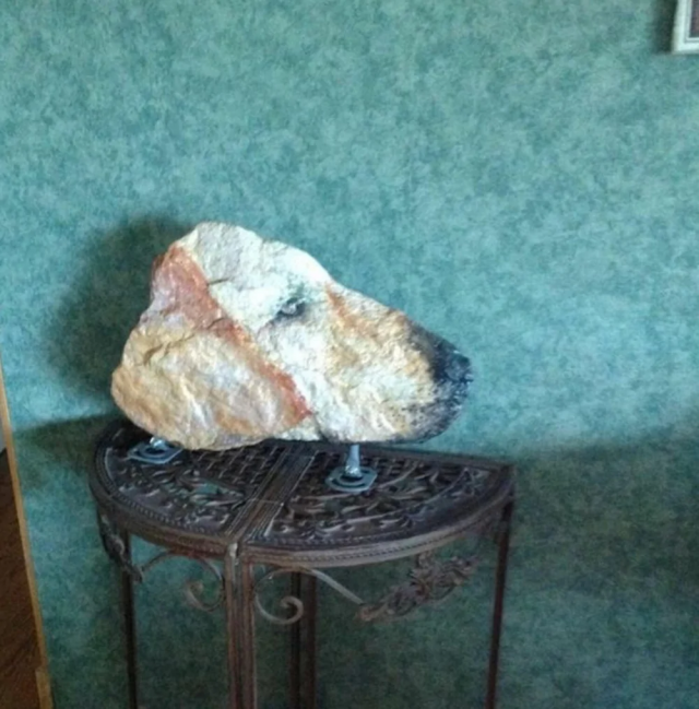 А этот камень причудливой формы головы собаки породы лабрадор. Был найден в провинции Лабрадор. Горная порода так и называется «лабрадорит»