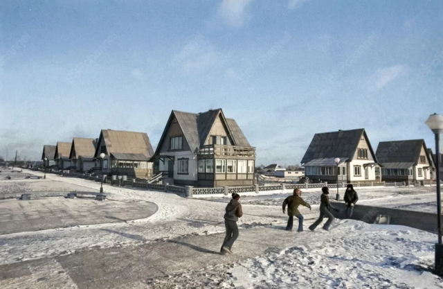Совхоз "Повадинский" деревня Вельяминово Московской области. Одна из улиц совхоза, 1983 год.