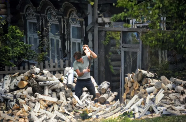 Житель деревни занимается заготовкой дров. Деревня Овинищи Гороховецкого района Владимирской области, 1987 год.