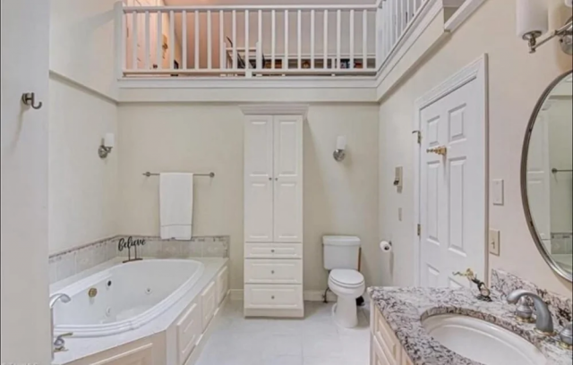 Открытый потолок позволяет любоваться сверху всем, что происходит в ванной