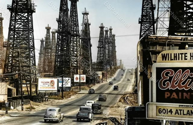 Нефтяное месторождение. Сигнал-Хилл, Лонг-Бич, Калифорния, США, 1944 год.