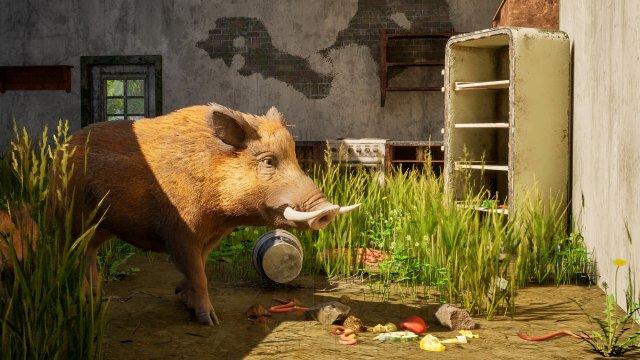 Главная цель — найти пропавших поросят и выжить. По пути можно крушить, грабить и ломать всё, что осталось от цивилизации. А чтобы помочь природе — какаем семенами съеденных растений и восстанавливаем экосистему.