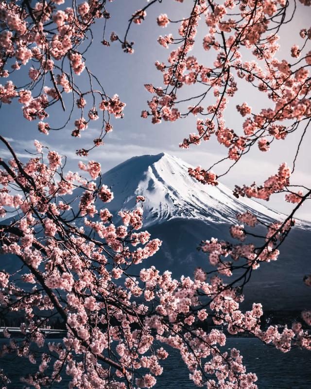 От заснеженной вершины в разгар зимы до огненных осенних листьев, обрамляющих гору, фотографии Косуге раскрывают всю палитру природы. Весной силуэт Фудзи будто утопает в облаке цветущей сакуры, а летом вершина окутана туманами и облаками, создающими атмосферу лёгкой, почти сказочной тайны.