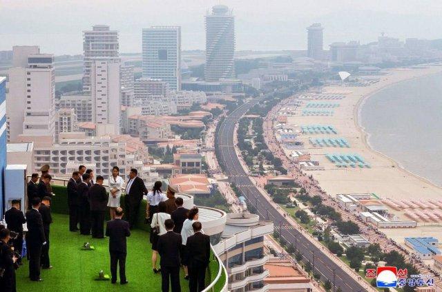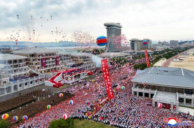 Ким Чен Ын лично приехал в город Вонсан, чтобы открыть для туристов гигантский комплекс с отелями, аквапарками, спортивными площадками, а также культурными, торговыми и развлекательными центрами Официальный прием туристов на новом курорте начинается уже 1 июля.