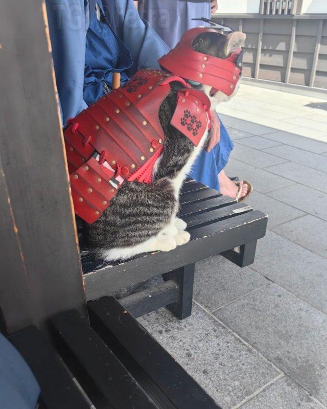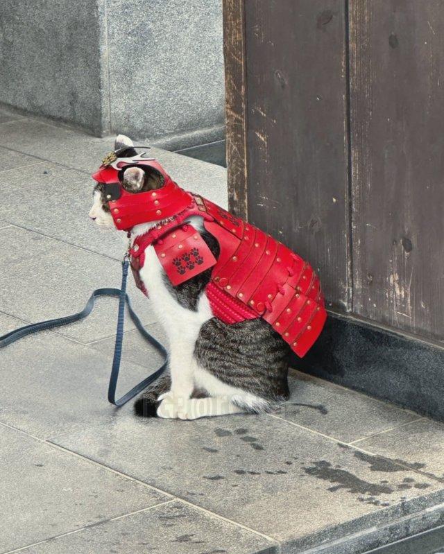 В Японии есть настоящий кот-самурай по кличке Котэцу-кун — четвероногий защитник замка Кумамото, одетый в самурайские доспехи. Котэцу-кун спокойный, вежливый и очень добросовестно исполняет свой долг — охраняет замок и приветствует гостей со всего мира.