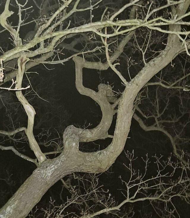 8. Дерево, сгоревшее во время лесного пожара много лет назад, напоминает топологическую карту