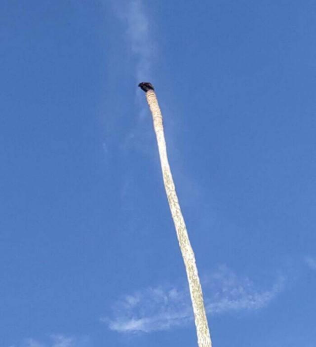 7. Орёл на вершине пальмы без листьев напоминает космический запуск
