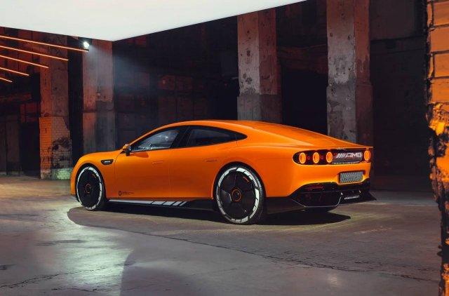 Перед нами концепт Mercedes AMG GT XX. Это четырехдверное электрическое купе мощностью 1340 л.с. со сверхбыстрой зарядкой на 400 км за 5 мин. Говорят, после из него сделают серийный седан Mercedes-AMG.