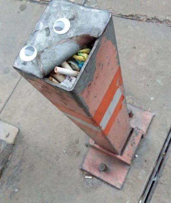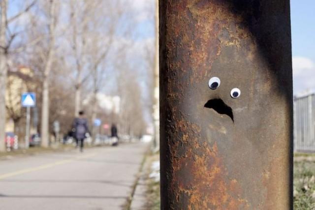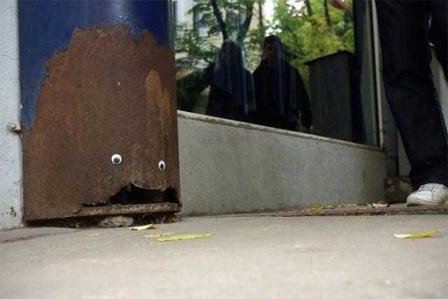 Эта фотоколлекция — настоящая игра воображения и юмора. Казалось бы, обычные объекты городской среды: мусорки, столбы, трубы, скамейки… Но стоит добавить им парочку пластиковых глаз, и они тут же обретают характер, эмоции и даже настроение. Кто-то удивлён, кто-то подмигивает, кто-то выглядит так, будто только что услышал сплетню.