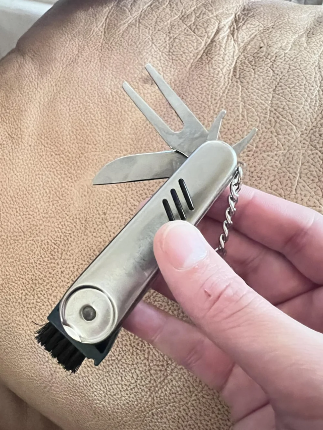 4. Странный карманный инструмент с вилками с двумя зубцами и кисточкой