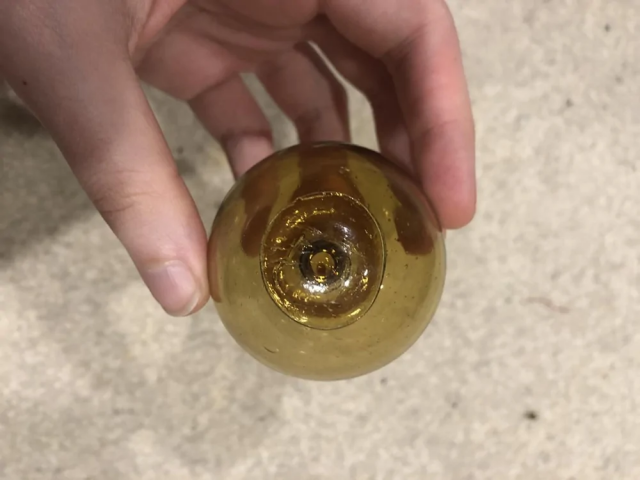 2. Большой коричневый стеклянный шар, найденный плавающим в озере