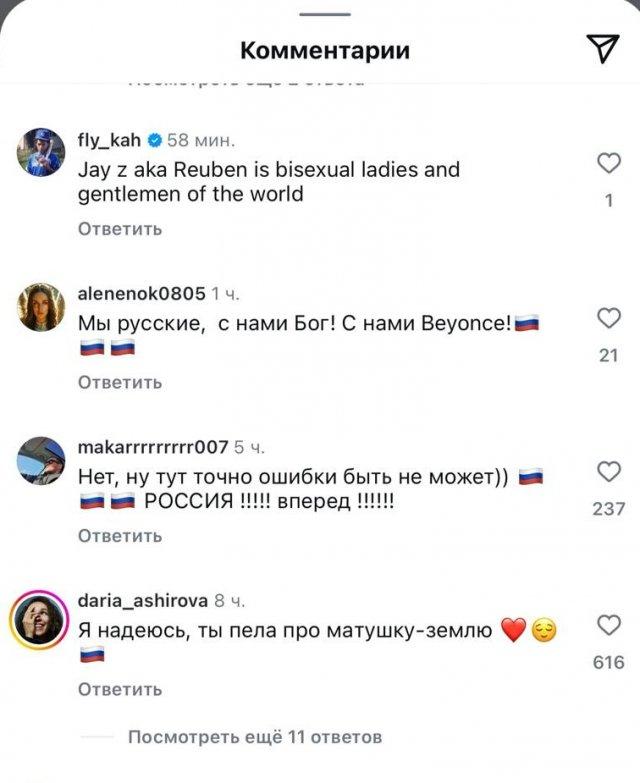 Накануне все обсуждали наряд Бейонсе, которая вышла в костюме российского триколора. Это удивило многих фанатов и они пошли в комментарии.