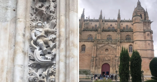 Космонавт на стене Университета Саламанки в Испании — одного из старейших в Европе. Здание построено ещё в 13 веке. Космонавт появился там после реставрации стены в 1992 году.