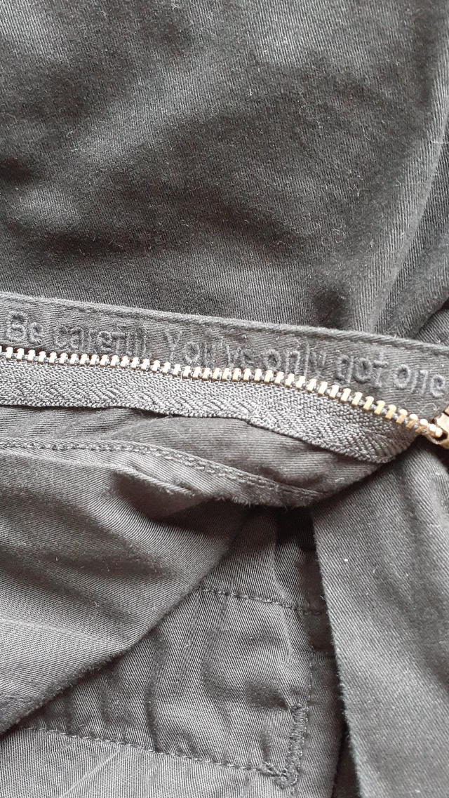 Надпись на ширинке мужских джинсов: "Будьте осторожны. У вас он только один."
