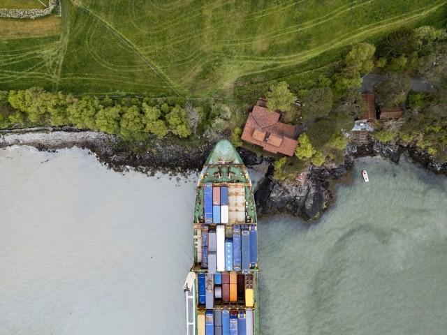 4. Контейнеровоз NCL Salten сел на мель в Бюнесете, недалеко от Тронхейма, Норвегия. Житель Норвегии проснулся и обнаружил в своём палисаднике огромный контейнеровоз. 135- судно прошло в нескольких метрах от дома Йохана Хелберга около 5 утра по местному времени в четверг, 22 мая 2025 года. Норвежец узнал об инциденте только после того, как его испуганный сосед, увидев, как судно направляется прямо к берегу, несколько раз позвонил в дверь и в конце концов сам позвонил ему. (Фото: South West News Service)