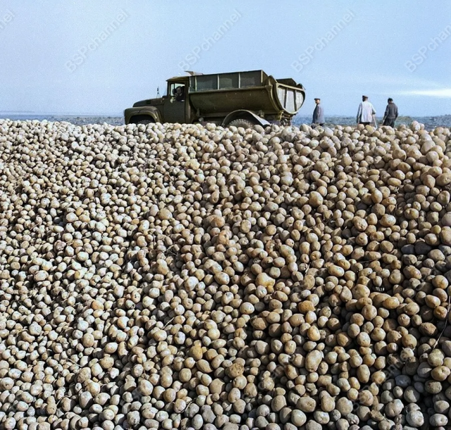 Урожай картофеля на совхозном поле. Минская область, 1971 год.