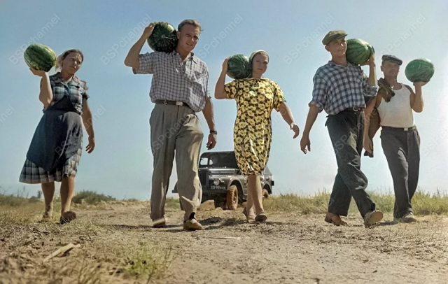 Бригада возвращается с бахчи, 1965 год.
