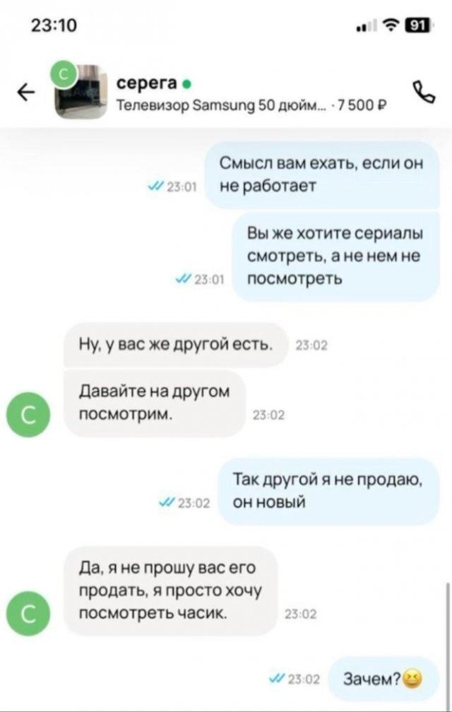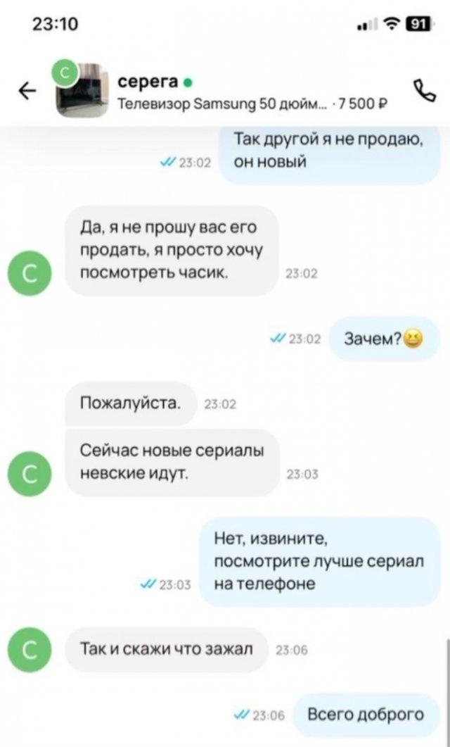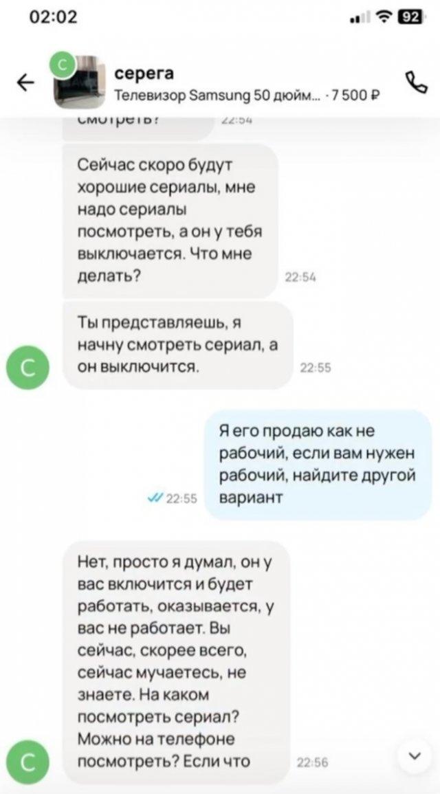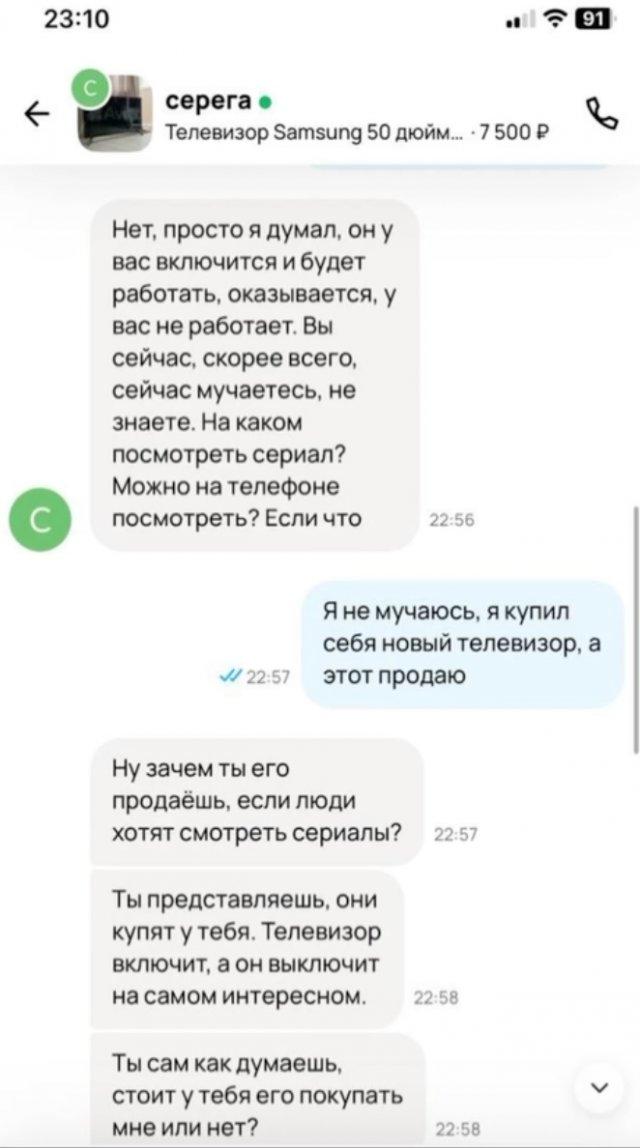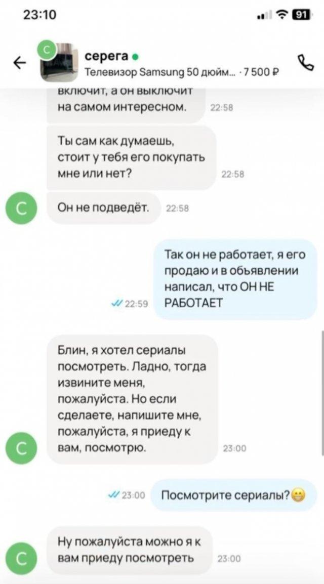 Забавную переписку опубликовал один из продавцов на популярном сайте. Там на другом конце смартфона просто хотели посмотреть сериал...