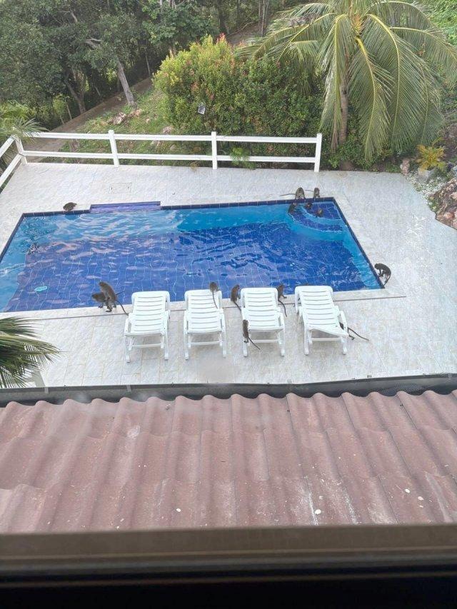 Обезьяны оккупировали виллу туристов в Таиланде и устроили там безбашенную тусовку. Пара арендовала дом с видом и шезлонгами, но утром обнаружила, что виллу захватили местные приматы-извращенцы. Да уж... отпуск удался.