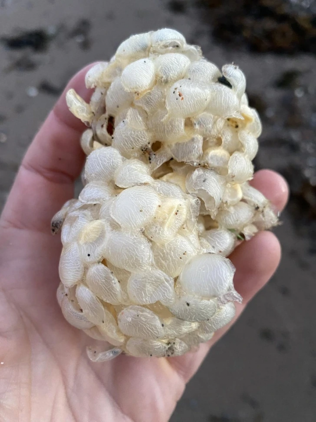 Похоже на яйца трубача — это такая морская улитка с закрученной конусообразной раковиной.