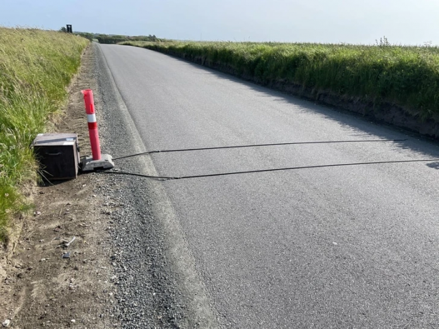 Когда по ним проезжает транспортное средство, в коробке срабатывает счетчик. Думаю, раз на дороге 2 провода, это значит, что они проверяют скорость. Устройство подсчитывает скорость авто по времени между срабатыванием первого и второго провода.