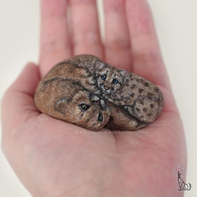 Для японской художницы Аки Накаты (Akie Nakata) обычные камни — это не просто куски породы, а застывшие в ожидании животные, которых осталось лишь разбудить. С помощью кисти и красок она превращает природные булыжники в удивительно реалистичных сов, черепах, собак и других зверей.