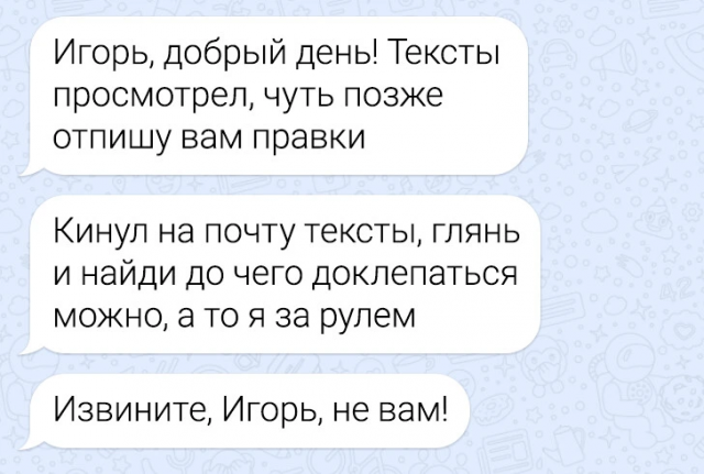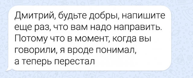 «Работаю в школе. Сегодня, в рабочую группу пришло сообщение следующего характера. После прочтения настроение резко улучшилось, а руководитель вообще хохотала»