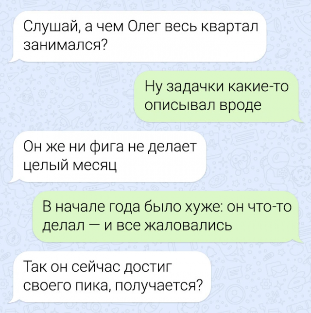 Офисная работа — это не только строгий костюм и четкий график, но и возможность посмеяться вместе с коллегами над ежедневными курьезами. Кто-то случайно ошибется в письме, кто-то неудачно пошутит, а обычные рабочие моменты превращаются в забавные истории, поднимающие настроение всей команде.