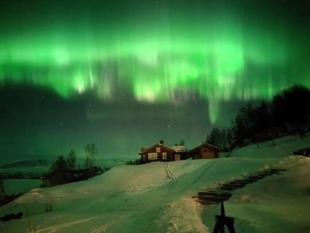 8. «Невероятное северное сияние в моём домике в Оппдале»