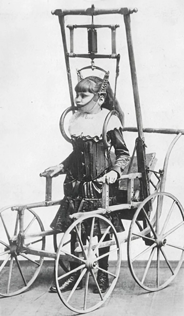 Аппарат, созданный доктором Кларком в конце 19 века, предназначался для лечения сколиоза. Деревянная конструкция была настолько тяжёлой, что пациенты с трудом передвигались. Это значительно снижало эффективность терапии.