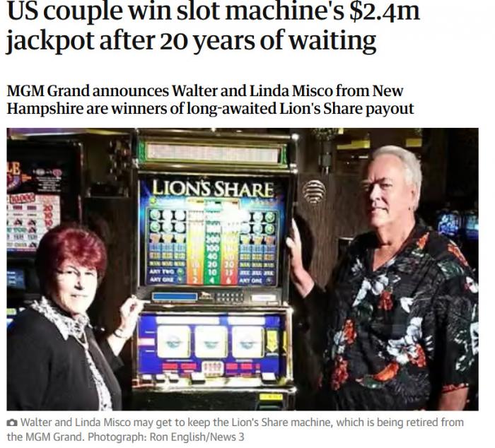 Одна из самых популярных «пьяных» историй произошла в Лас-Вегасе в 2015 году. Турист из Техаса по имени Уолтер после долгой ночи пьянки с супругой поставил в казино $100 на однорукого бандита. Он толком не помнил, как дошёл до автомата, но по свидетельству охраны, он трижды закричал: «Всё или ничего!» — и сорвал джекпот в $2,4 млн.
