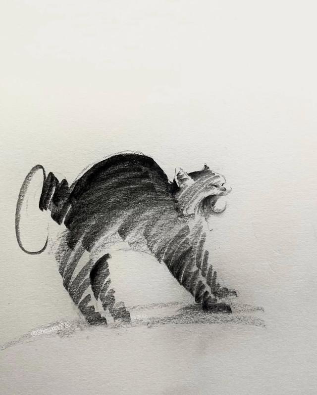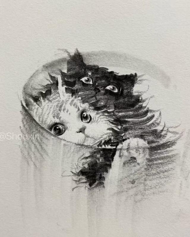 Сегодня мы хотели бы познакомить вас с очаровательным творчеством современного китайского художника Шоу Синя из провинции Хэнань, известный своими минималистичными карандашными рисунками кошек.