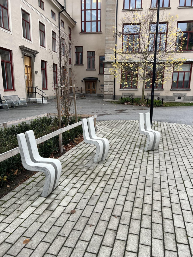 Бетонный диван IKEA перед их штаб-квартирой