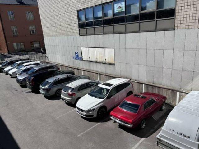 9. На парковке на стене сделаны белые отметки, чтобы людям было легче парковаться
