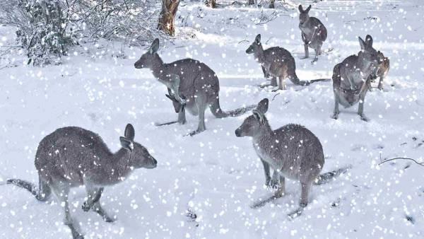 Природа продолжает сходить с ума: в Австралии впервые за много лет выпал снег! Южные и восточные регионы накрыло метелью, сугробы в некоторых местах достигают полуметра. Для растерянных кенгуру и многих местных жителей такое происходит впервые.