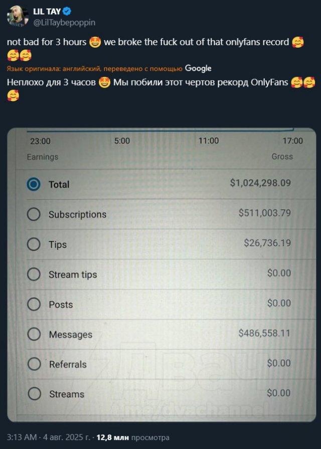 Тиктокерша Lil Tay 2007 года рождения завела "онлик" в день своего 18-летия и заработала миллион долларов всего за три часа. Таким образом, девушка побила рекорд платформы. Держим вас в курсе событий и желаем продуктивного дня на работе!