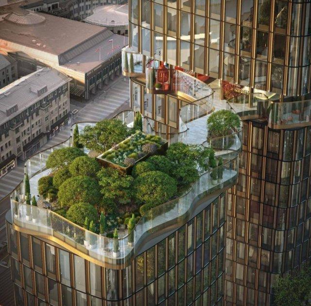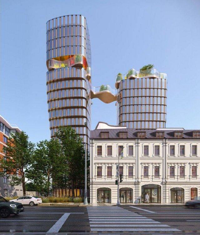 Строго говоря, это не совсем небоскребы, потому что уж совсем в центре столицы засовывать 50-этажные здания нельзя. Но вот у метро Менделеевская появятся две башни 15 и 19 этажей с приватным парком на мосту.