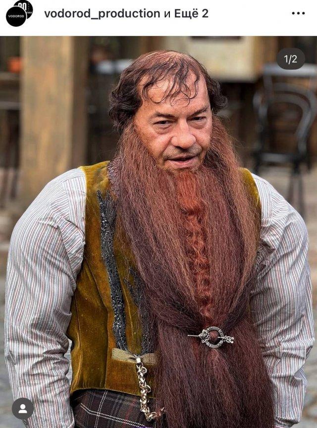 Фёдор Бондарчук в образе Карабаса-Барабаса на съемочной площадке нового фильма-сказки Игоря Волошина «Буратино». Кажется, это 100% попадание.