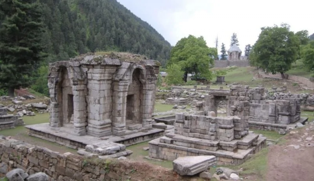 Давно заброшенный индуистский храм в горах Кашмира в Индии